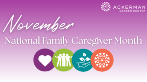 Each November, we celebrate National Family Caregiver Month to recognize the incredible people who care for loved ones facing cancer. At Ackerman Cancer Center, we see every day how much caregivers give of themselves. They provide comfort, encouragement, and strength through every step of treatment. Their compassion makes a world of difference in the lives of our patients.