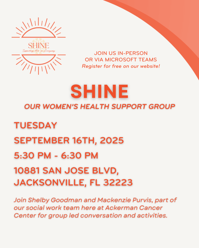 Join us on Tuesday, September 16th, 2025, from 5:30 PM – 6:30 PM for our SHINE Women’s Health Support Group. SHINE is an interactive women’s cancer support group that provides […]