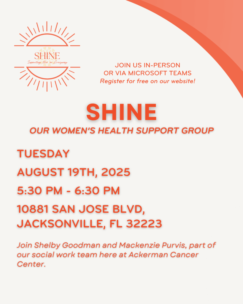 Read blog postJoin us on Tuesday, August 19th, 2025, from 5:30 PM – 6:30 PM for our SHINE Women’s Health Support Group. SHINE is an interactive women’s cancer support group that provides […]