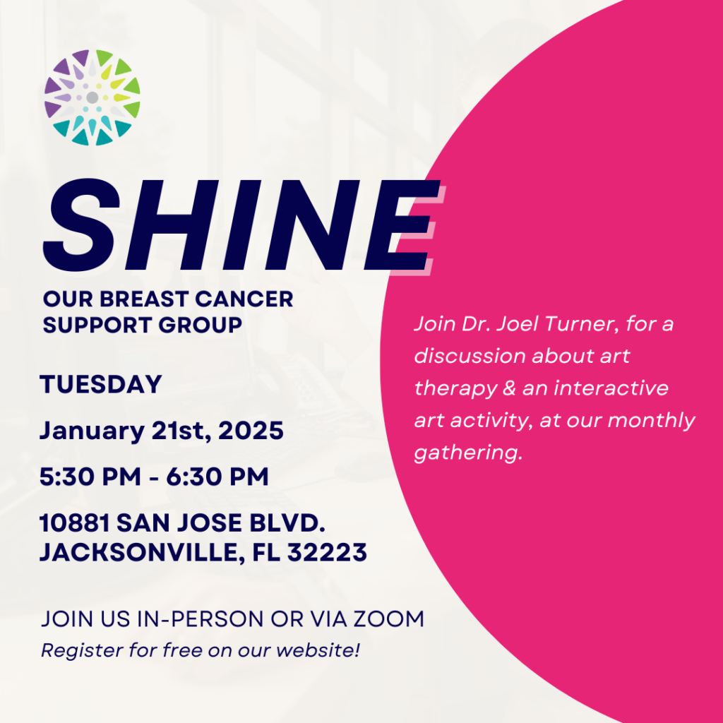 Read blog postJoin us on Tuesday, January 21st, 5:30 pm – 6:30 pm for our SHINE Breast Cancer Support Group with Joel Turner for a discussion about art therapy & an interactive […]